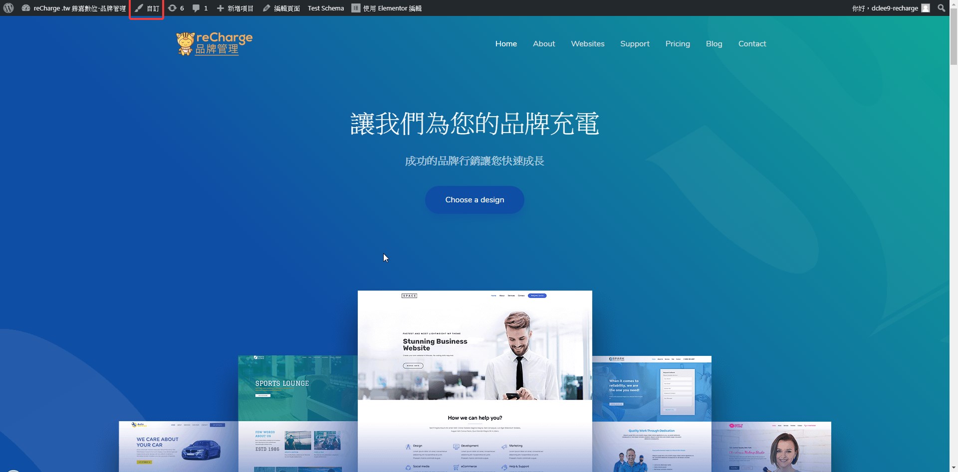 1. 登進 Wordpress,在首頁上方點選【自訂】